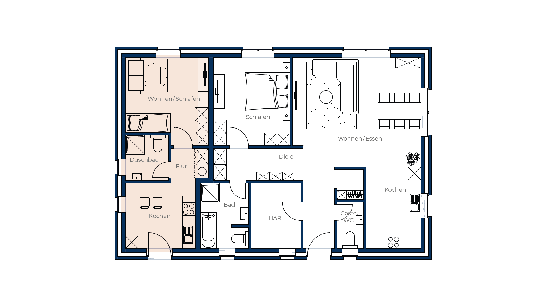 Mit einer Einliegerwohnung im Haus schaffen wir die perfekte Lösung für Familien, die gerne unter einem Dach leben und dennoch ihre Privatsphäre wahren möchten. Die Einliegerwohnung ist komplett eigenständig und verfügt über einen separaten Eingang. Sie bietet ausreichend Platz für Ihre Gäste, ältere Familienmitglieder oder kann auch als Büro- oder Hobbyraum genutzt werden.