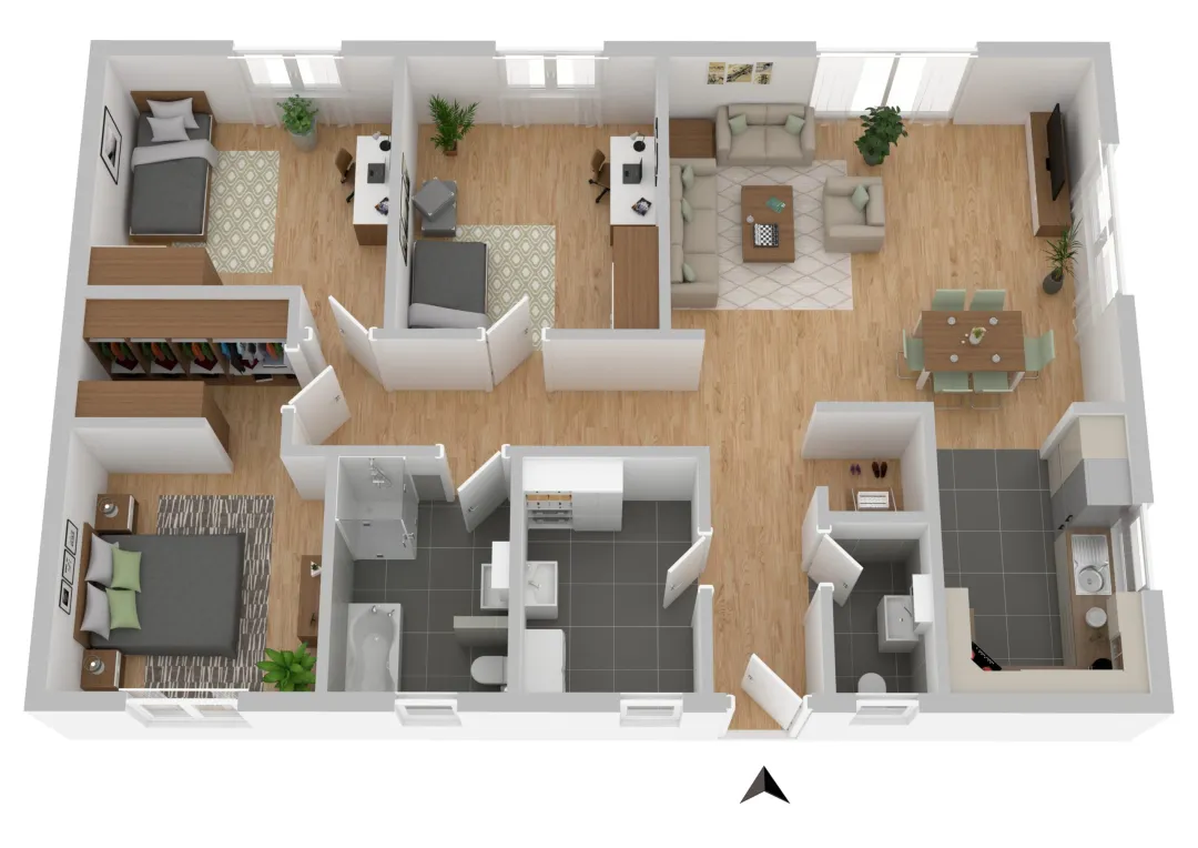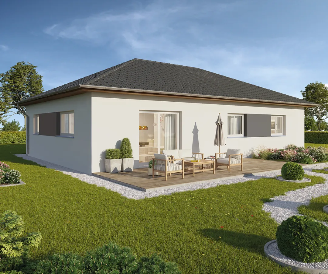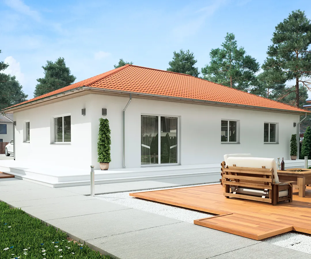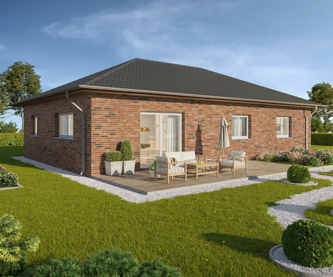 Ahlum ist unser meistverkaufter Bungalow. Und das nicht ohne Grund. Der gut durchdachte Grundriss lässt keine Wohnwünsche offen. Drei Zimmer bieten Platz zur individuellen Gestaltung und der großzügige Wohn- und Essbereich lädt zu gemeinsamen gemütlichen Stunden ein.