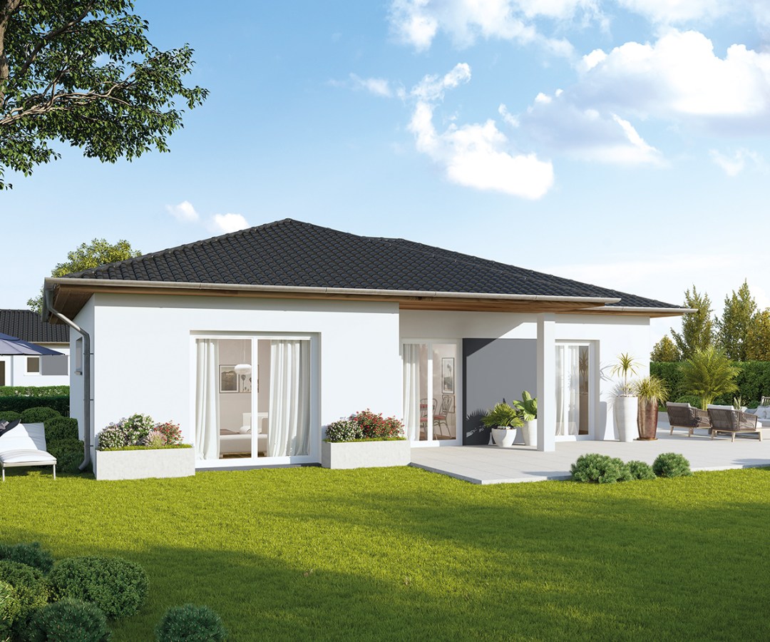 Um möglichst viel Stauraum zu bieten, haben wir den Bungalow um einen Vorratsraum in der Küche und einen Abstellraum im Flur erweitert. Das zusätzliche Zimmer kann als Kinderzimmer, Ankleideraum oder auch als Sportzimmer genutzt werden.