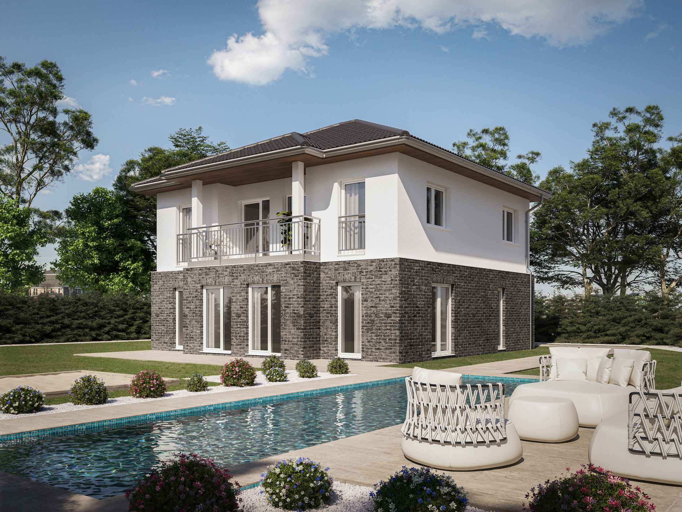 Unser Wörlitz ist ein wahrer Blickfang. Das harmonische Zusammenspiel der Mischfassade gibt dem Haus das ganz besondere Etwas. Durch den integrierten Erker mit Balkon, wird nicht nur von außen ein elegantes Aussehen, sondern auch im Wohn- und Essbereich ein mit Tageslicht durchfluteter Raum geschaffen, welcher schon beim Eintreten in die Diele all seine Aufmerksamkeit auf sich zieht.